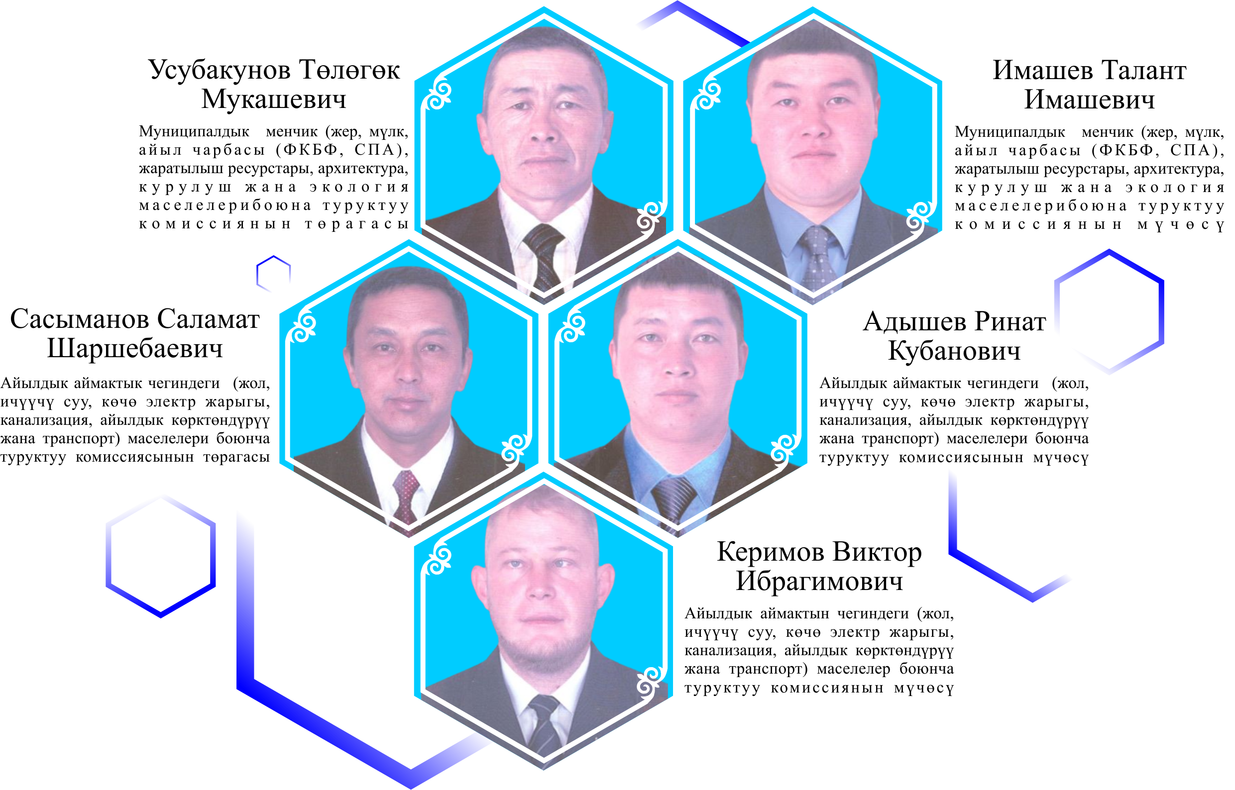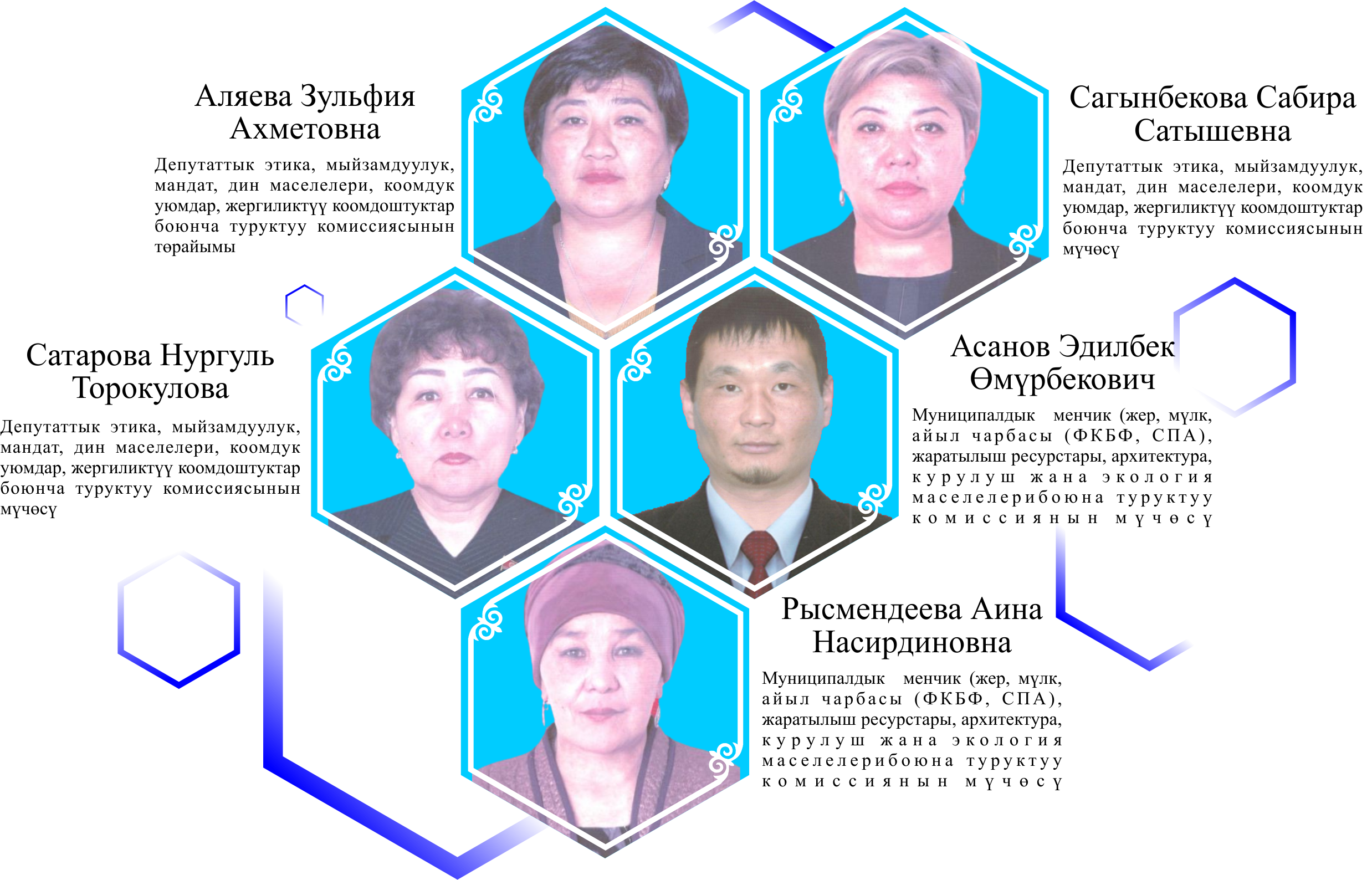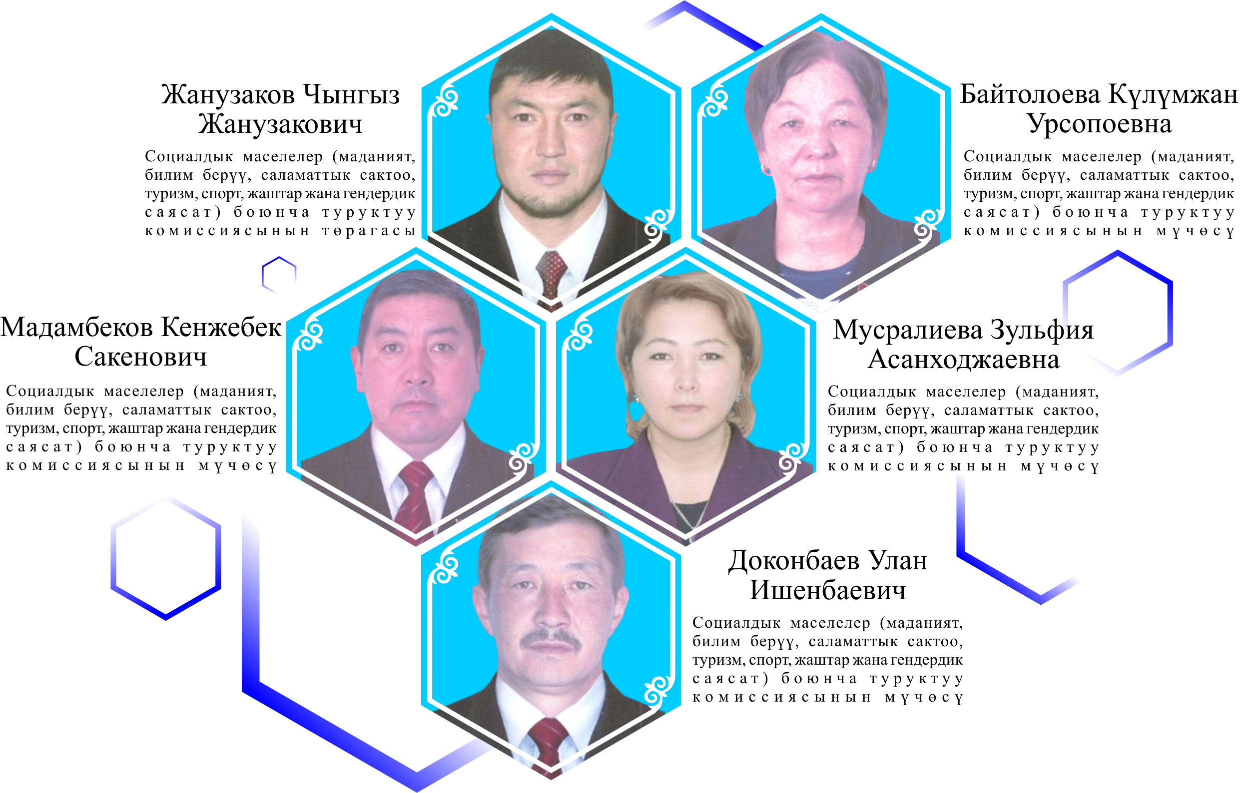 | 1 | Алмабеков Айбек Исабекович – төрага | 29.05.1988 | Кыргыз | Жогорку